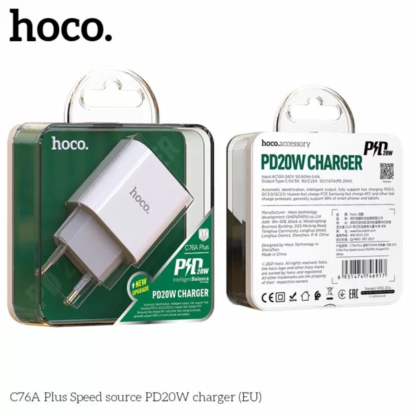 C76A SPEED SOURCE SINGLE TYPE-C PORT WALL CHARGER PD EU PLUG ADAPTER