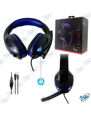 LY PC11, Micro Casque Gaming LED pour PC, Smartphone, PS4 en Bleu
