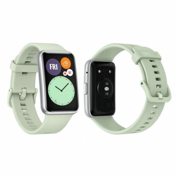 Montre Connecté HUAWEI Watch Fit – Écran: 1.64\ » AMOLED Tactile (456 x 180) – Systéme d »exploitation: Android/iOS – Connectivité: Bluetooth 5.0 – Mémoire: 4 Go – Capteurs: Capteur 6 axes IMU (accéléromètre, gyroscope), Capteur optique de fréquence cardiaque, Capteur capacitif, Capteur de lumière ambiante – Resistance à l’eau 5 ATM – Couleur: Vert – Garantie: 1 an