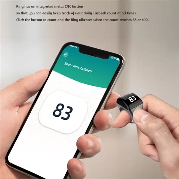 The ring has an intergrated metal CNC button,you can pray and count anytime anywhere,no matter you are at home or outside,waiting for the traffic lights or on a trip and you can easily keep track of your daily tasbih count on the app.
