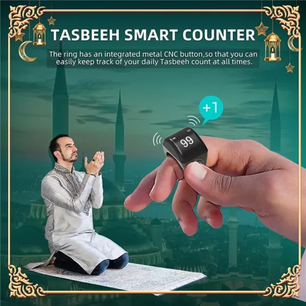 The ring can display the time, number of chants and prayer times. beatuful and functional, also can be used as a stylish accessory