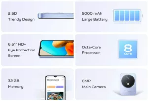 Grande Batterie de 5000mAh :Vivo Y02 livré par une grande batterie de 5000mAh améliorée pour durer plus longtemps grâce à la technologie d’économie d’énergie IA.