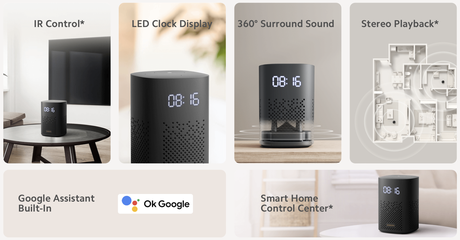 L’enceinte se transforme en télécommande infrarouge grâce à l’intégration d’un module émetteur IR. Combiné à Google Assistant, vous pouvez contrôler à la voix vos appareils ménagers présents dans la pièce donnant une nouvelle vie à vos appareils conventionnels non connectés. Mais pour profiter pleinement d’une vie connectée, il suffit de lier l’application Xiaomi Home à Google Home (ou tout autre appareil compatible Google Home) pour contrôler vos appareils intelligents de votre maison à la voix.